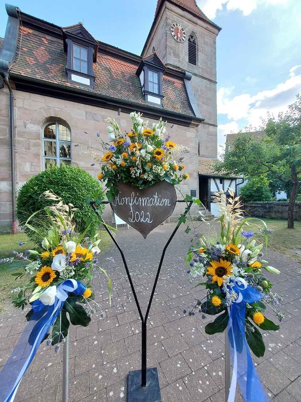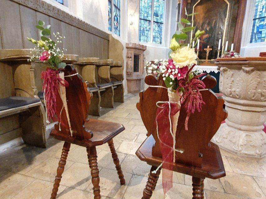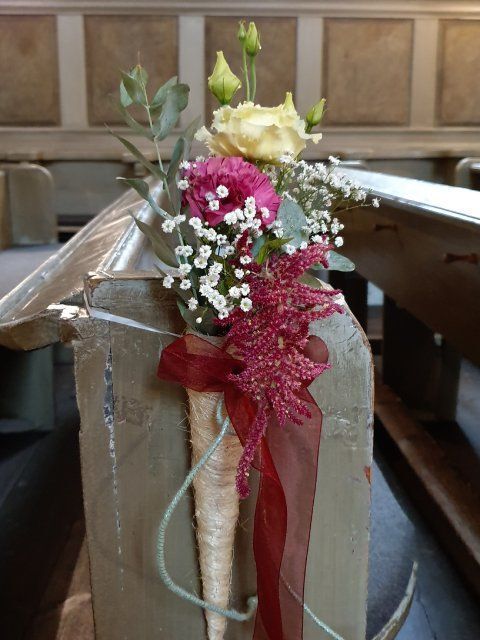 Neben den Brautsträußen und den geschmückten Brautautos finden Sie bei uns das begehrte, floral gefüllte Herz sowie zahlreiche Tischdekorationsvarianten. Auch der Anstecker für den Bräutigam und der Kirchenschmuck darf in unserem Portfolio nicht fehlen.