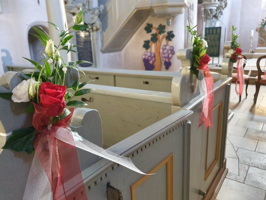 Wir setzten ebenso die Kirche und Ihre Location in Szene und zaubern Ihnen filigrane Anstecker oder Haarschmuck.